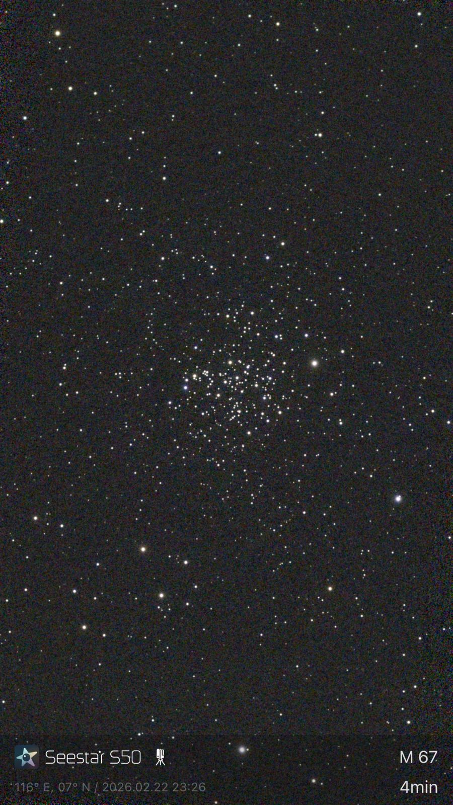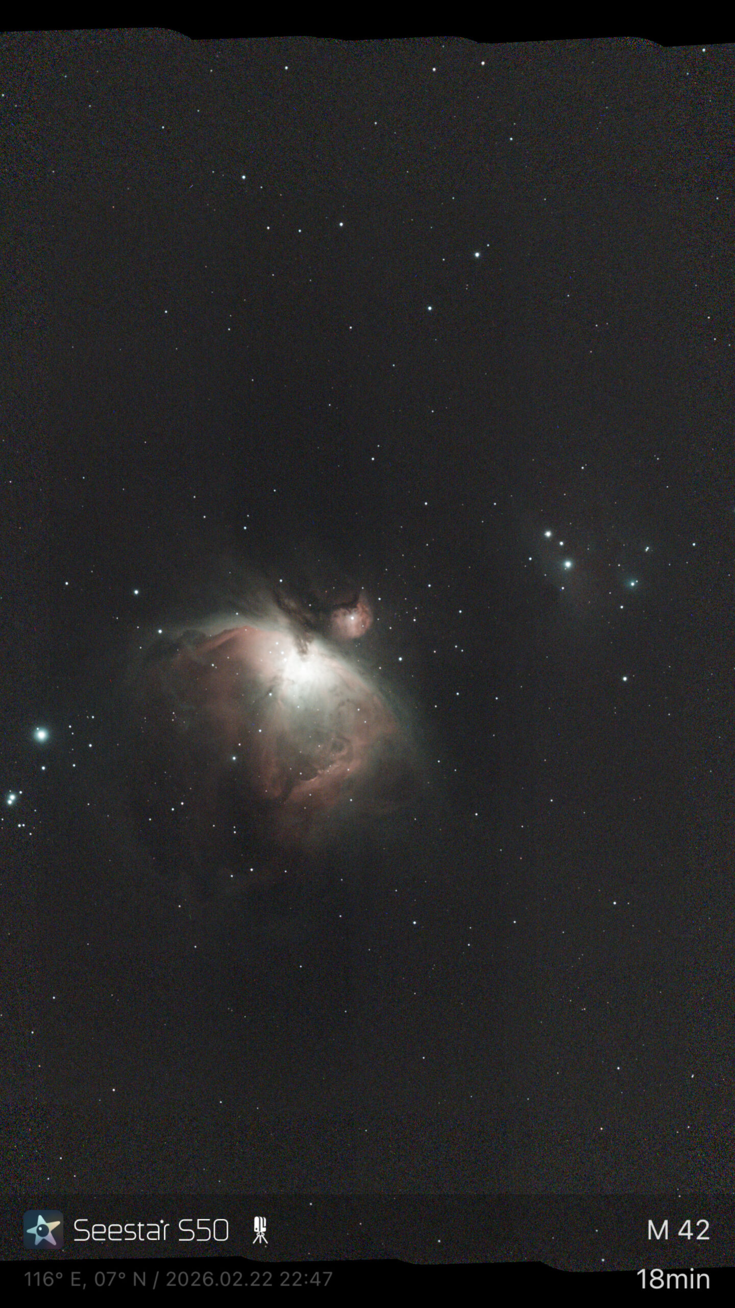 At night, we travelled to the Tip of Borneo, the northernmost point of the island. The coastal location offers unobstructed horizons facing the open sea, making it an ideal site for night-sky observation. During our observation session, we also learned how to use the Starsense Explorer, along with the Sky Map on the phone, to navigate the night sky. By using the digital sky map, we were able to identify constellations and immediately locate specific celestial objects such as stars, planets, and nebulae through the telescope. Using the digital smart telescope, ZWO Seestar S50, we captured images of the Orion Nebula and the star cluster Messier 67. Even with limited time and travel fatigue, the sky revealed countless stars, constellations, and distant galaxies.